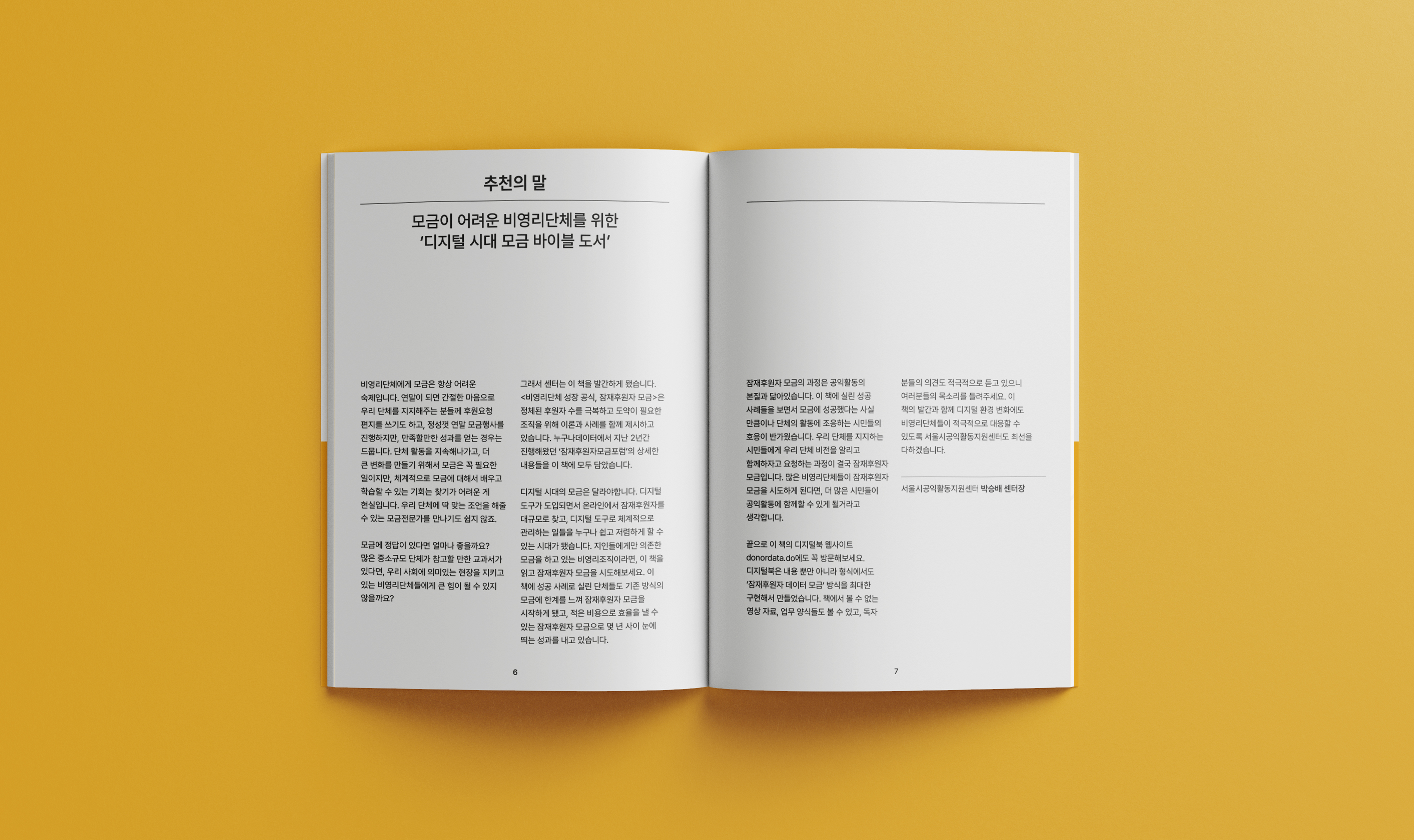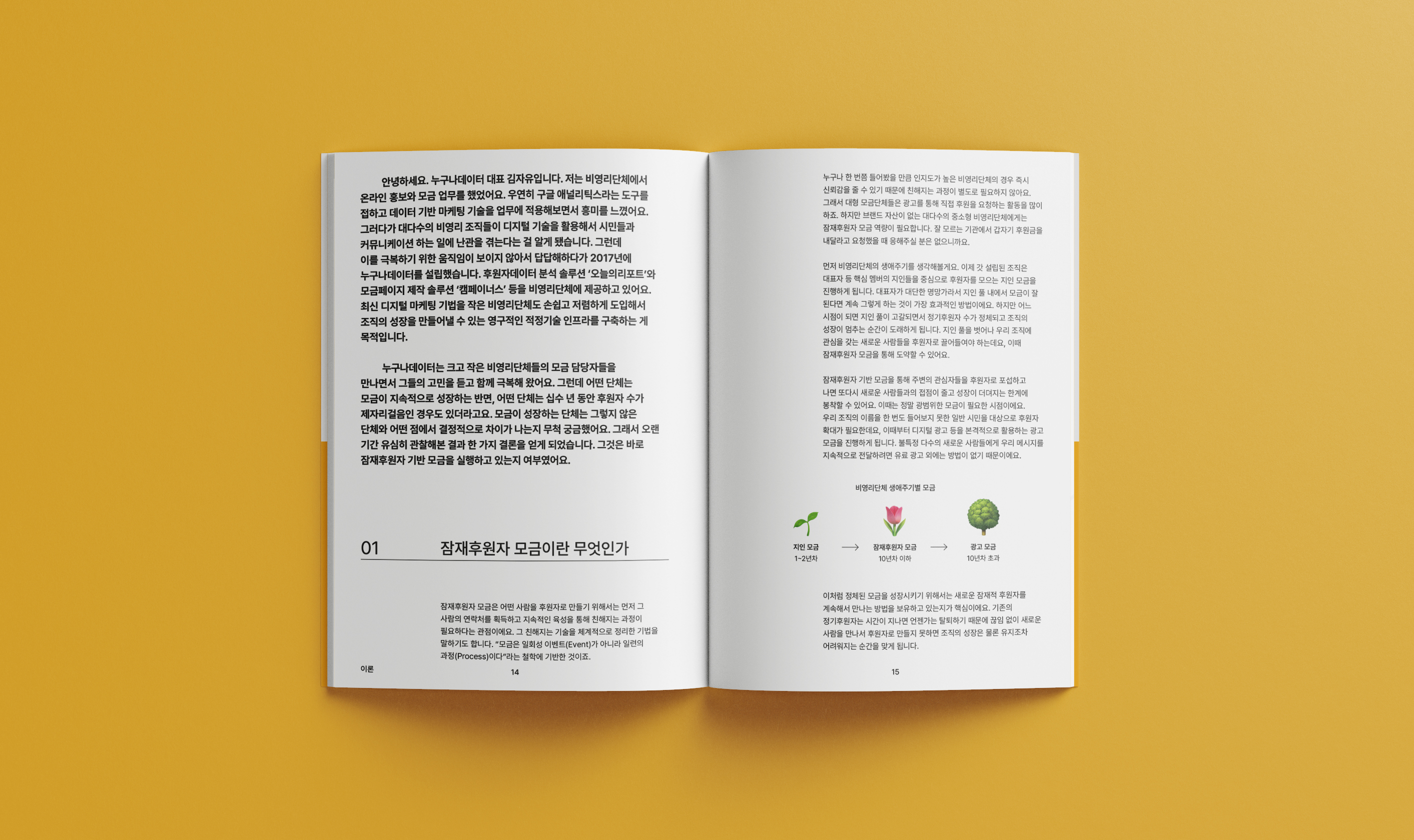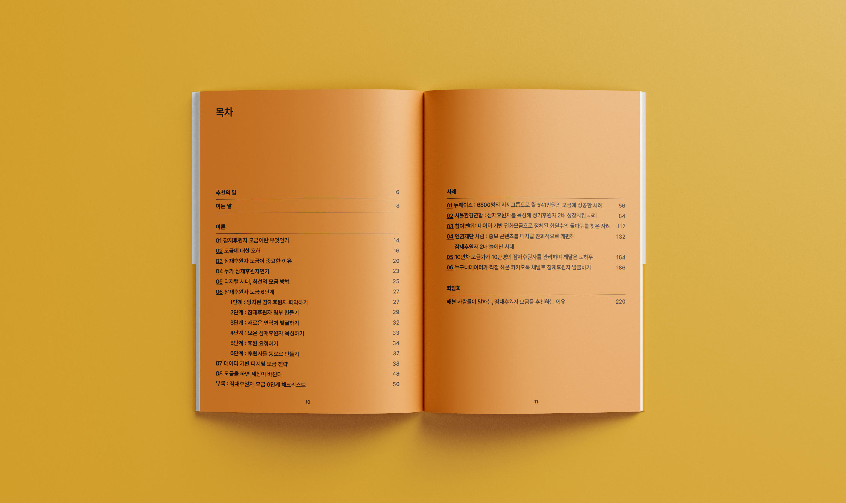 잠재후원자 모금은 우리 활동을 지지하는 잠재후원자의 데이터를 모아서 고관여자로 육성하다가, 모금이 필요할 때 이들에게 후원을 요청하여 후원자로 전환시키는 모금방법입니다. 누구나데이터만의 노하우를 담은 책을 디자인했습니다.